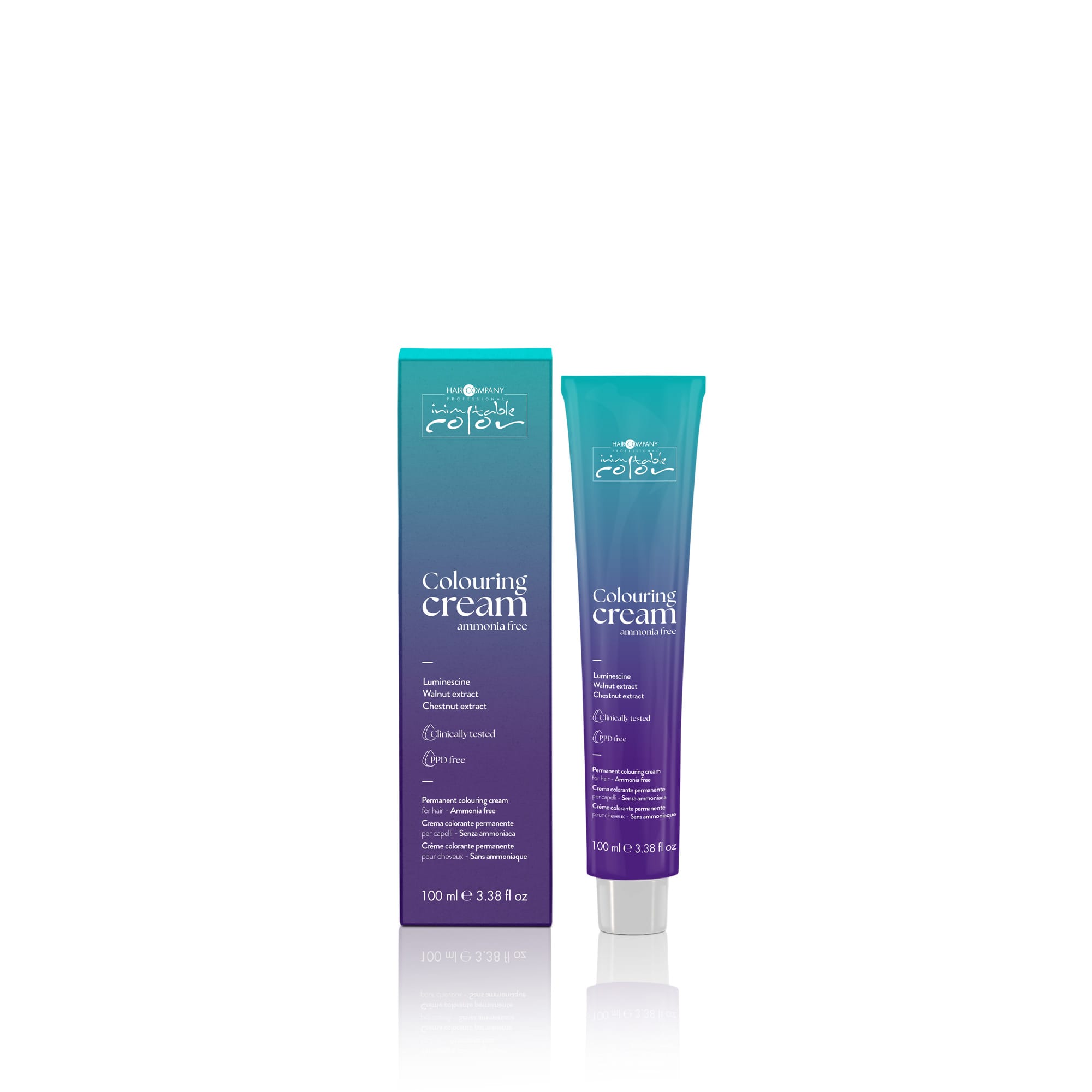Weich strukturierte Färbung mit zartem Duft für 47 Farbtöne, aufgeteilt in 3 Familien, formuliert mit raffinierten Mikropigmenten.